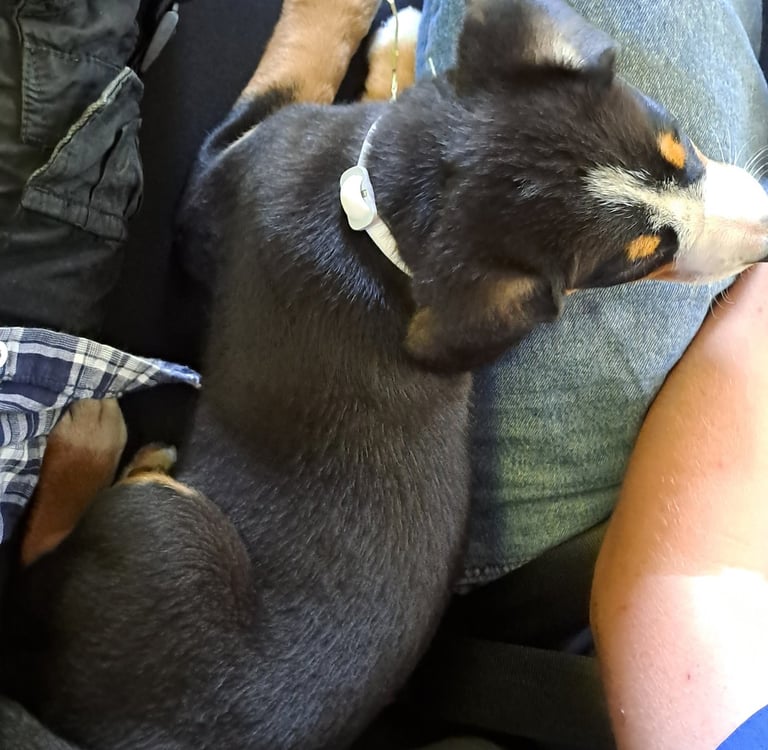 Ich wurde Anfang 2025 in eine große Hundefamilie hineingeboren. Die ersten Wochen verbrachte ich mit meinen vielen Geschwistern in einem Gehege.